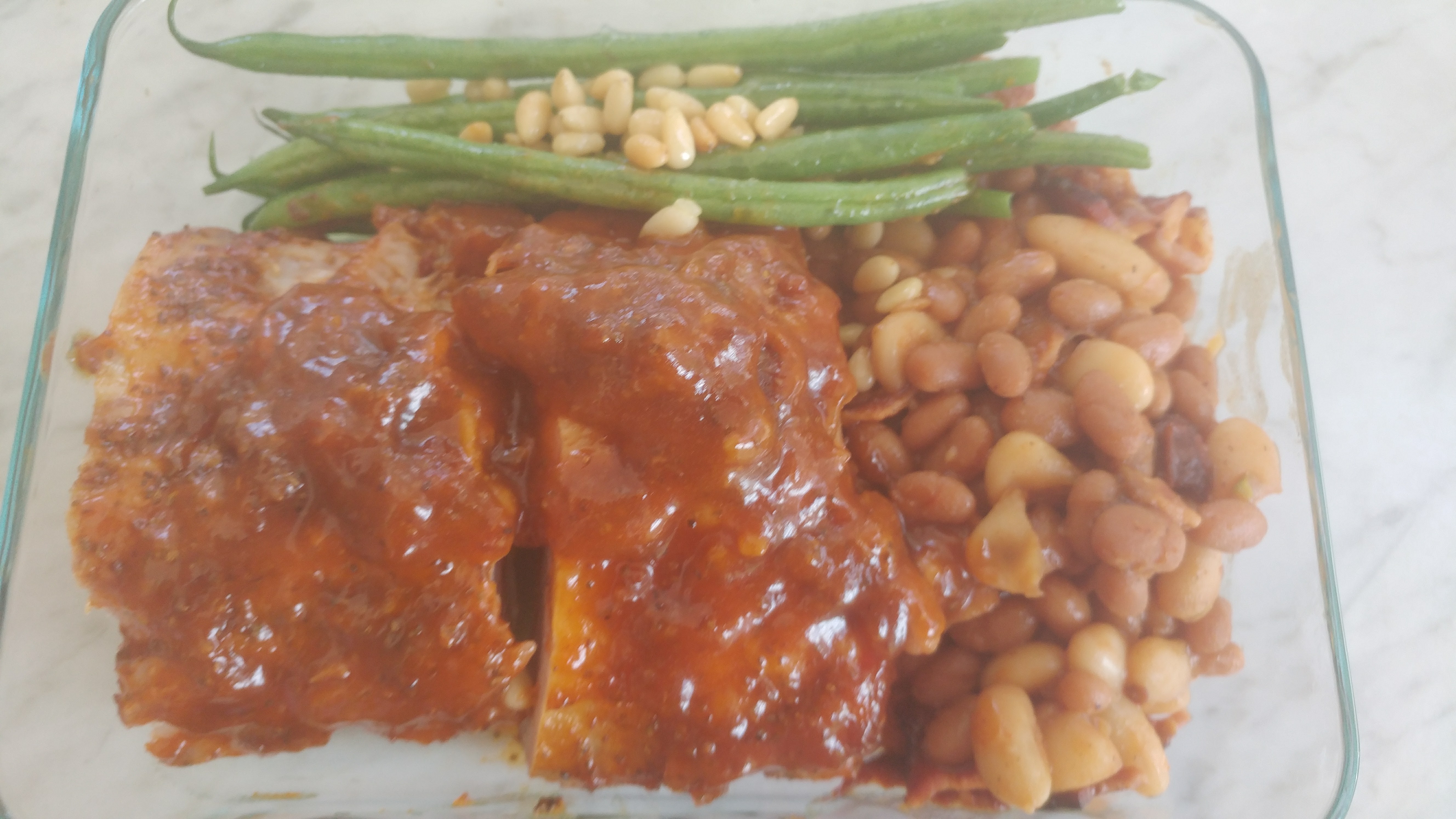 I am a weekly personal chef for a lovely couple in La Grange. They like to eat healthy, with lots of flavor and no processed ingredients. I cook for the with lots of protein and bright fresh vegetables. I make an extra portion of each meal, and pack them up for his lunch, which makes it much easy for him to eat healthy at work, and avoid eating out so often. This week I made Thai Beef Curry with Roasted Turmeric Cauliflower, Oven Baked BBQ Ribs with Bacon Chipotle Baked Beans, Roasted Green Beans with Pine Nuts, Apricot Rosemary Glazed Chicken, Skinny Mashed Sweet Potatoes and Roasted Asparagus with Fennel Pollen. Eating fresh healthy food is helping him to lose weight and feel great! Eating well is so easy when you have a personal chef!